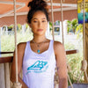 This racerback tank is soft, lightweight, and form-fitting with a flattering cut and raw edge seams for an edgy touch.