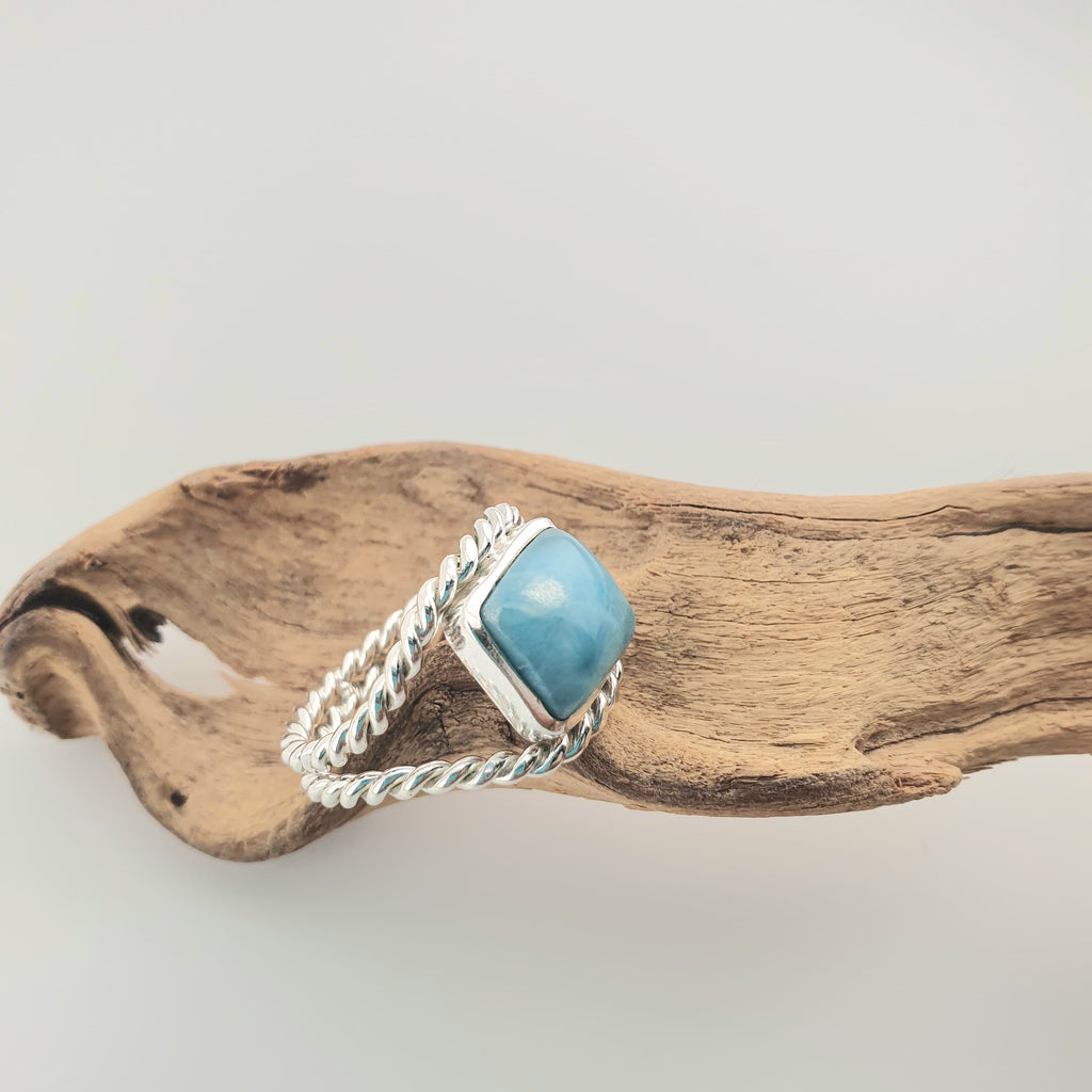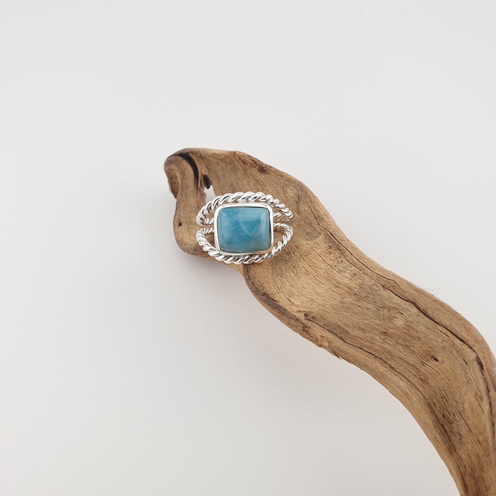 Handmade in solid .925 sterling silver and genuine larimar stone.