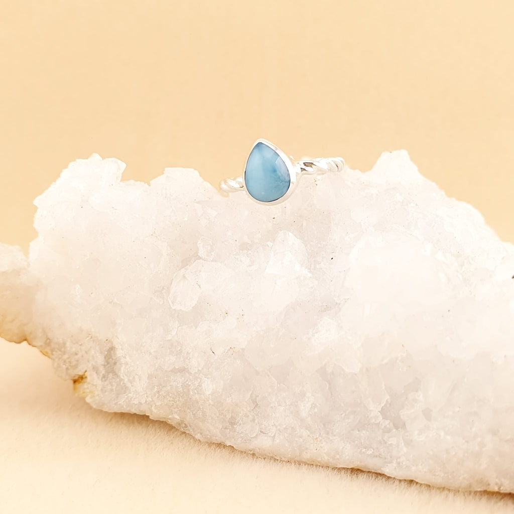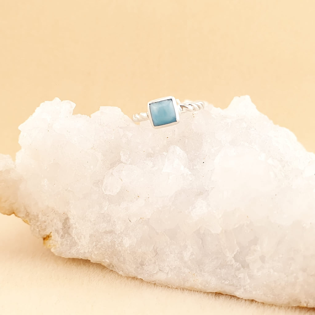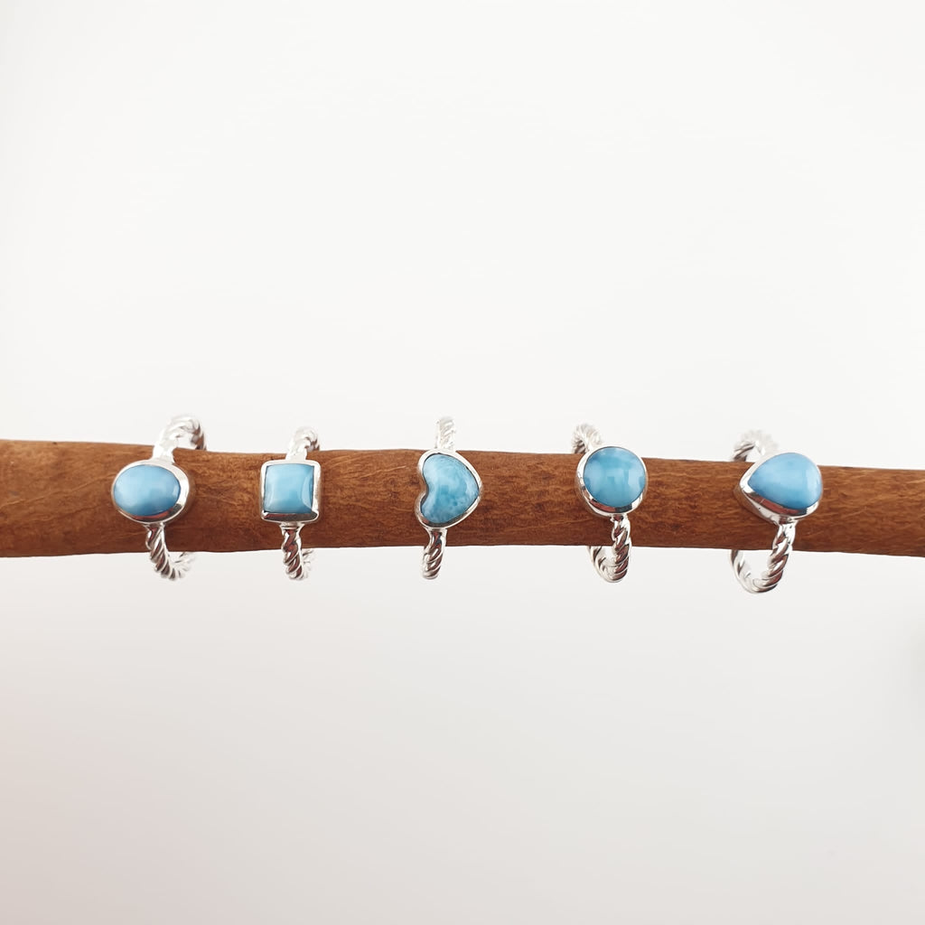 Dainty Larimar rings in different shapes, these can be worn alone or perfectly stack them up with your favorite pieces.