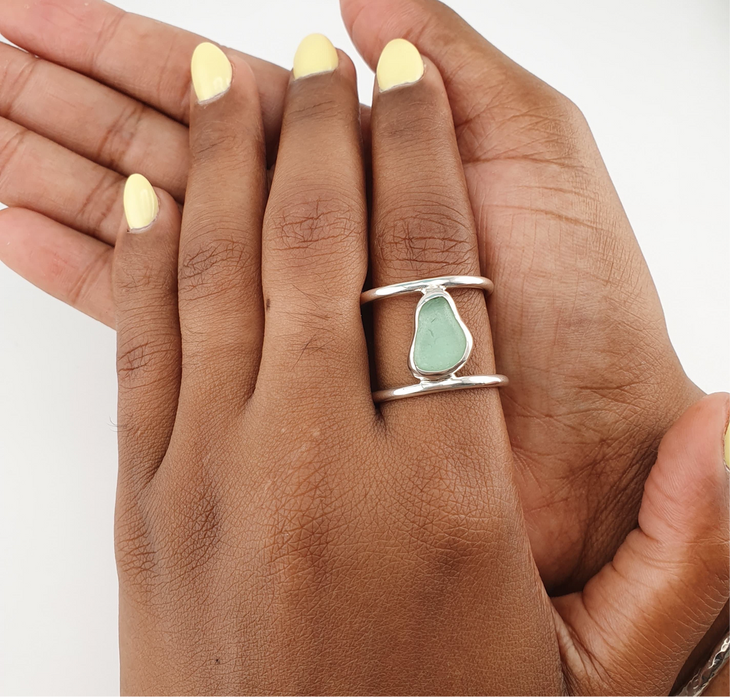 Handmade with love in .925 sterling silver metal using a sea glass sea foam color found in the Turks & Caicos Islands.