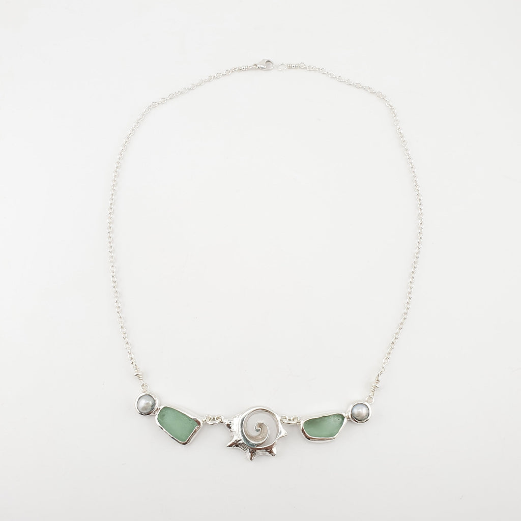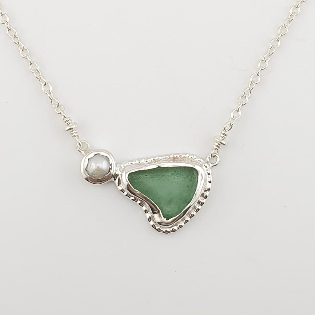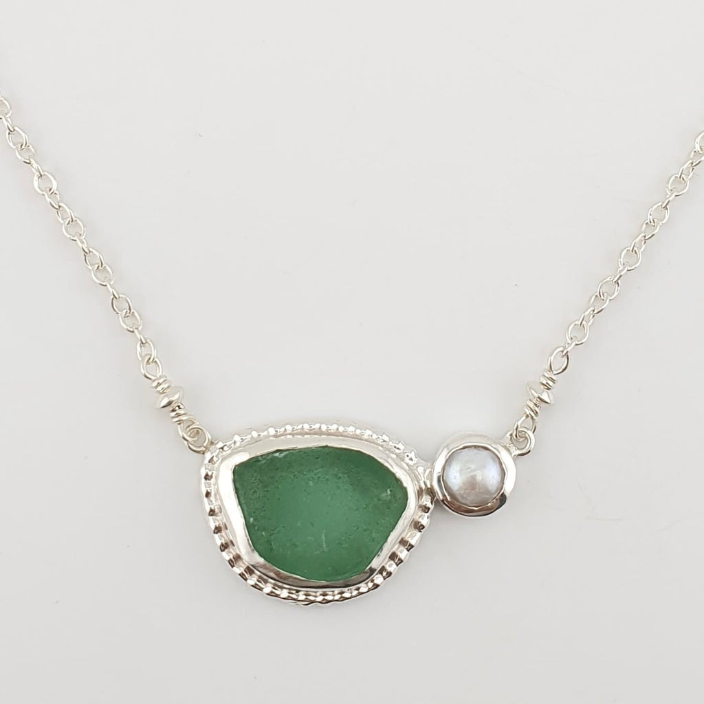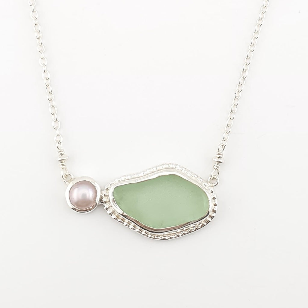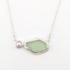 Sea glass necklace with Fresh Water Pearl