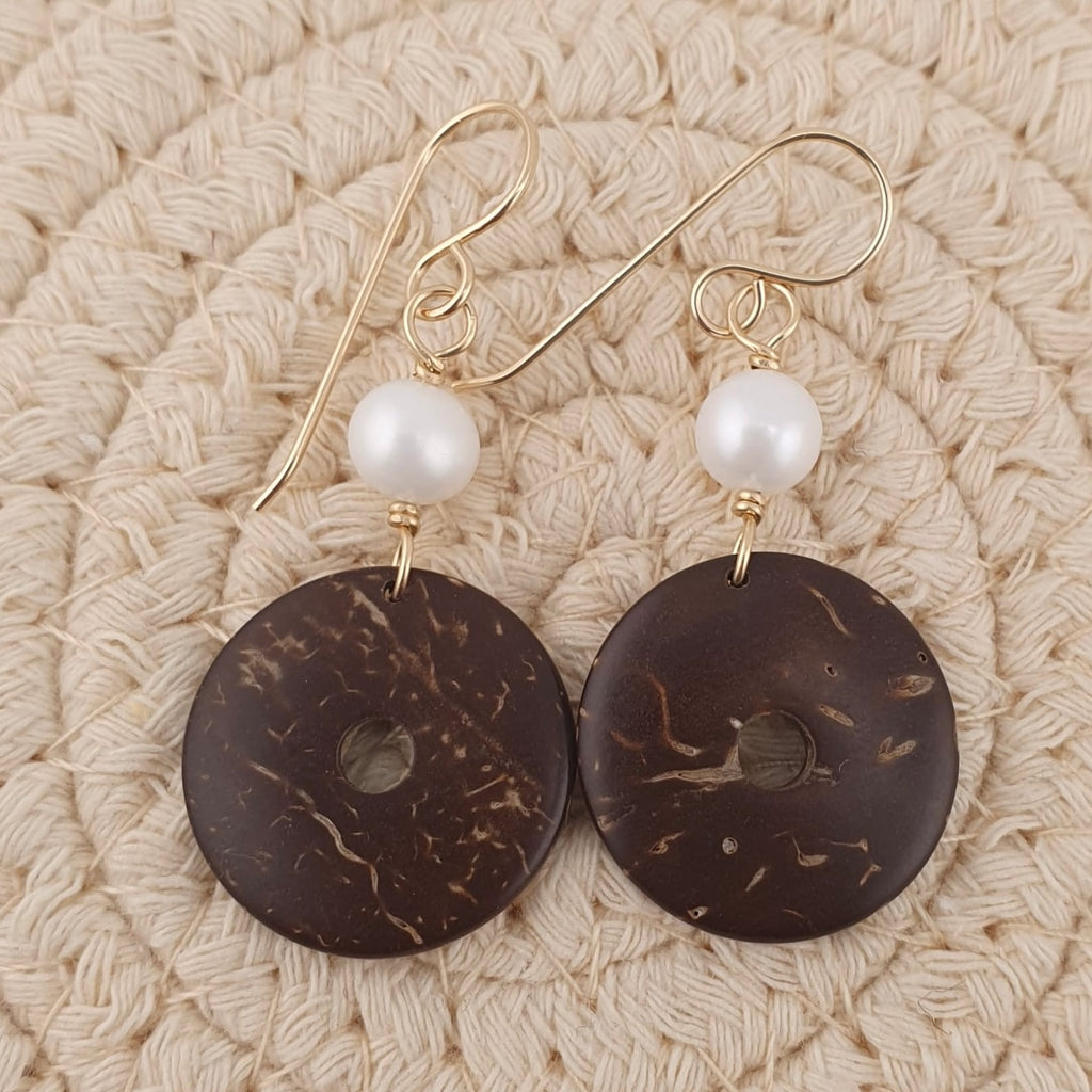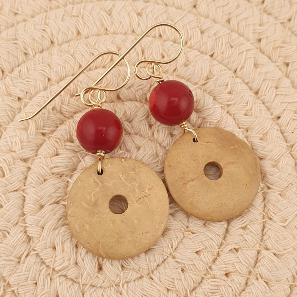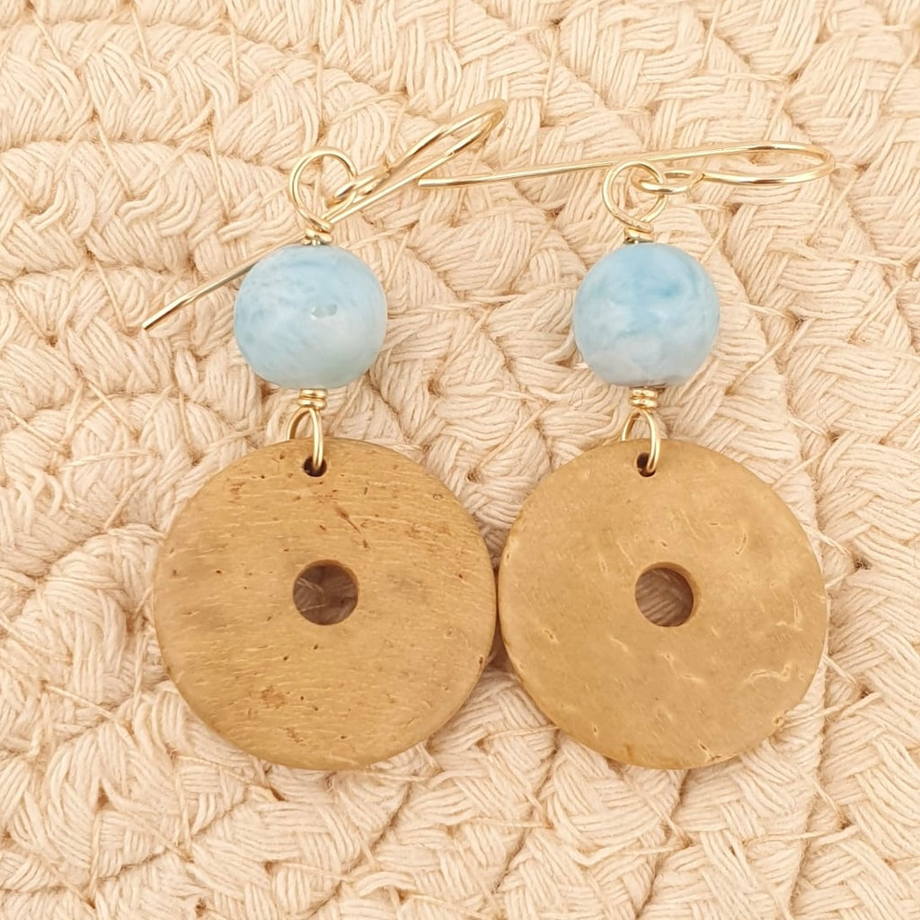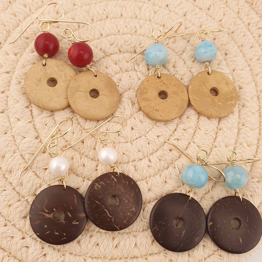 Handmade in the Turks and Caicos using 14k gold filled, coconut componer and genuine gemstone beads.