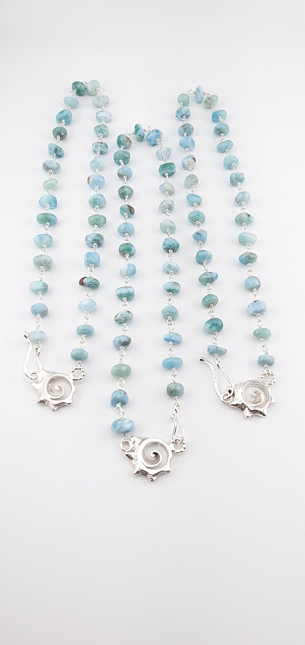 Spiral shell and larimar necklace